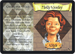 La capacité de "Molly Weasley" de chercher est semblable à celle de "La grosse dame", bienqu'en étant une sorcière, elle peut être utilisée comme personnage de départ. Dans ce cas, vous pouvez récupérer immédiatement "Ron Weasley", et les autres Weasley que vous récupérez ne demanderont qu'une action pour être mis en jeu. Imaginez que vous avez "Ron Weasley" en jeu. Vous pouvez alors récupérer "Arthur Weasley" et infliger des dommages grâce à vos items ou peut-être "Fred et George Weasley" pour attaquer votre adversaire avec des aventures. Évidemment, vu que "Fred et George Weasley" ne sont qu'un personnage supplémentaire, votre adversaire pourra tenter de l'éliminer. Si Molly ou n'importe quel autre Weasley est crucial pour la conception de votre deck, vous devrez en utiliser plus d'un exemplaire, ce qui diminue l'avantage que vous obtenez avec Molly. De plus, vous ne pouvez pas jouer avec 2 formes différentes d'un même personnage. Si "Ron le brave" est en jeu, vous ne pouvez pas jouer "Ron, le jeune frère". Cela réduit nettement vos options, car il n'y a qu'un nombre limité de membres Weasley, même s'il s'agit d'une grosse famille. Ça ne devrait pas être trop mal si vous regroupez les quelques Weasley à votre disposition dans un deck cohérent. Je n'ai cependant pas réussi à créer un tel deck.